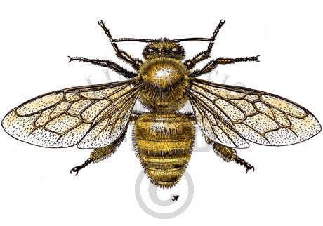 European Honey Bee, Apis melliferaPen and ink on catchboard, digital color -
