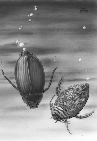 Whirligig and Predaceous Diving BeetlesCarbon Dust on Video Paper -