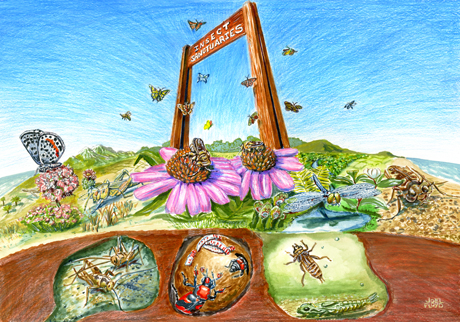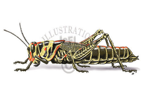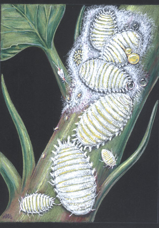Papaya mealybugs, Paracoccus marginatusGouache and colored pencil on posterboard -