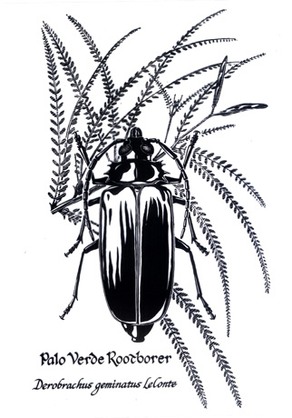 Palo Verde Rootborer, Derobrachus geminatusPen and Ink on Scratchboard -