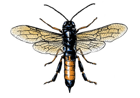 European Woodwasp, Sirex noctilioPen and ink on scratchboard, digital color -