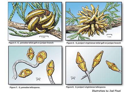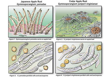 Japanese and cedar apple rusts telial stagespen & ink, digital color
