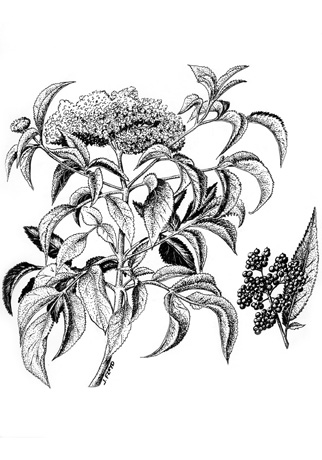 Mexican Elder, Sambucus nigraPen and ink on vellum -