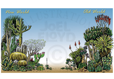 Cacti and SucculentsPen and ink on scratchboard -