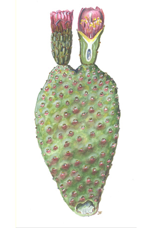 Beavertail Cactus, Opuntia basilariswatercolor -