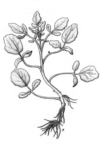 Watercress, Nasturtium sp.pen and ink on vellum -
