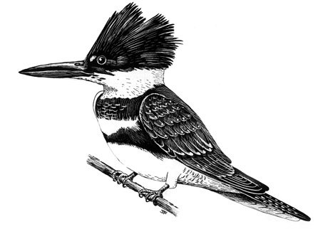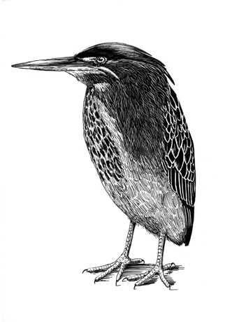 Green heron, Butorides virescensPen-and-ink on scatchboard -