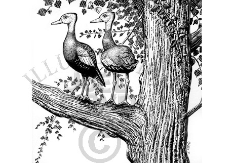Black-bellied whistling ducksPen-and-ink on scratchboard -