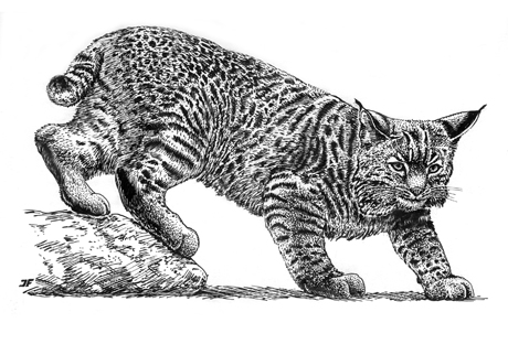 Bobcat, Lynx rufusPen-and-ink on scratchboard -