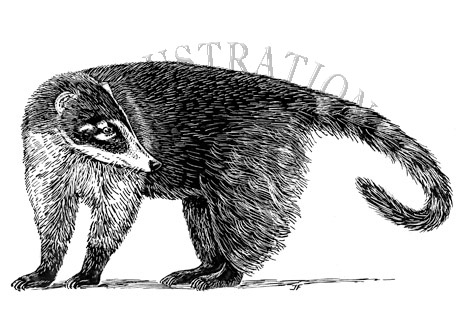 White nosed coati, Nasua naricaPen-and-ink on vellum -