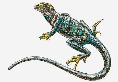 Collared Lizard, Crotaphytus collarisPen-and-ink on vellum, digital color -