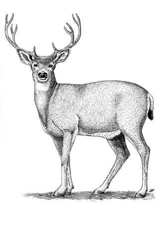 Mule deer, Odocoileus hemionusPen-and-ink on vellum -