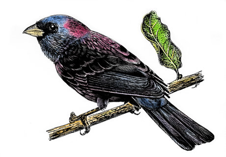 Varied bunting, Passerina versicolorPen-and-ink on scatchboard, digital color -