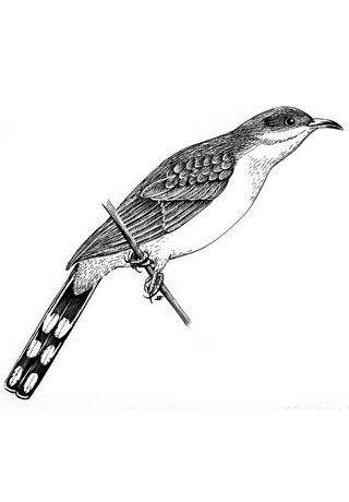 Yellow-billed cuckoo, Coccyzus erythropthalmusPen-and-ink on scatchboard -